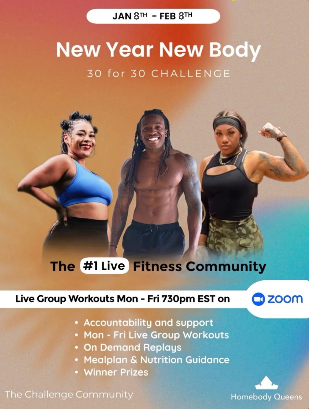 Access to Challenges and Mon - Fri Daily Live Workout Live Classes at 730PM EST, Live and On-Demand